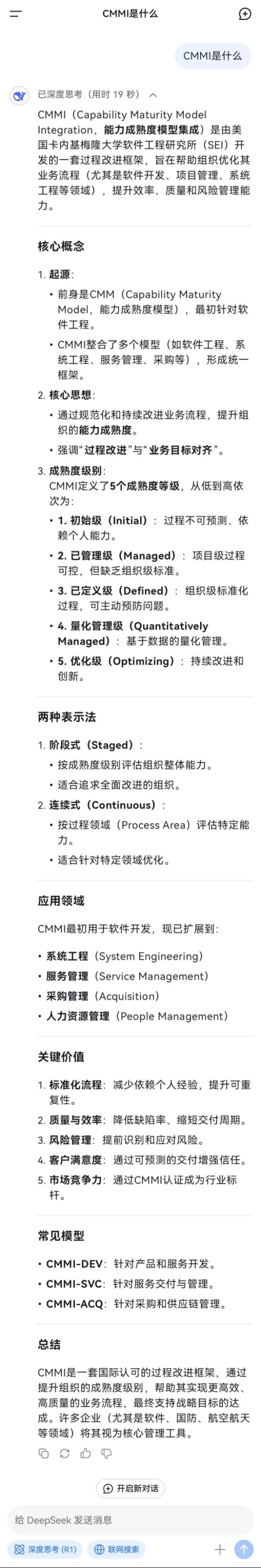 CMMI是啥?来看DeepSeek怎么说