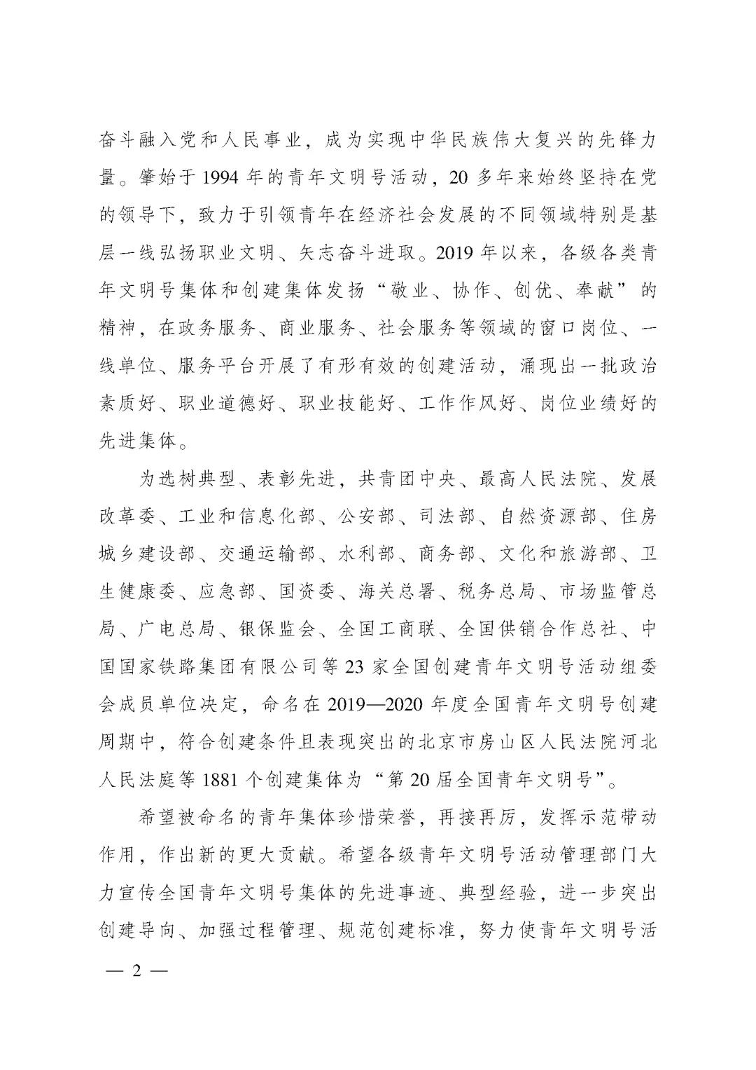 关于命名第20届全国青年文明号的决定